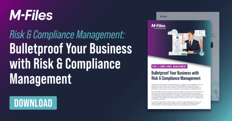Prøv M-Files gratis i 30 dager! Utforsk GenAI-funksjonene til M-Files Aino , forbedre samarbeidet med kolleger, automatisere arbeidsflyter og låse opp uendelige muligheter.
